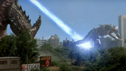 Setelah menyerap sekelompok burung gagak, The One mengikuti dengan penuh semangat. Kedua prajurit itu mulai bertarung, menghindar dan menyerang satu sama lain sampai monster itu menggunakan ekornya untuk menahan raksasa itu dan menariknya masuk. Itu mulai memukuli sang pahlawan dan memakan energinya sampai angkatan udara tiba, menyerang monster dan memungkinkan Ultraman melarikan diri dan menabrak iblis dengan dua pemotong energi, memutuskan sayapnya dan mengirim binatang itu jatuh ke tanah.