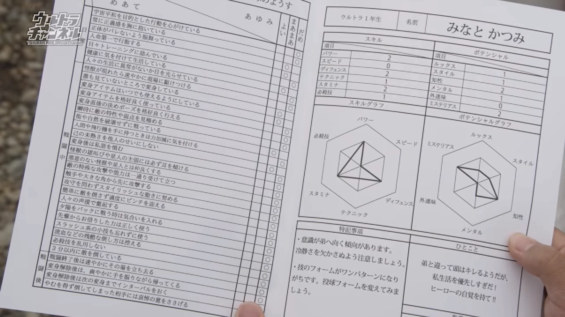 Menurut pemerhatian dan analisis oleh Makoto/Cereza, statistik Katsumi/Rosso yang ditunjukkan dalam episod 8 adalah seperti yang berikut: