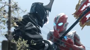 Apabila Ultraman Omega berlepas ke angkasa lepas selepas menyerang struktur di belakang Bulan, Zovaras menjatuhkannya dengan pancarannya, memulakan pertarungan dengan Omega di permukaan Bulan.Makhluk Asing Tiba Para Meteokaiju datang membantu Omega, dengan Zovaras cuba mencuci otak Rekiness, Trigaron, dan Valgeness. Omega mendapatkan Rekiness dan Trigaron tepat pada masanya, tetapi bukan Valgeness, yang telah dirosakkan oleh penceroboh itu. Zovaras menembak jatuh Omega sekali lagi dengan Valgeness Halberd, menyebabkan gergasi merah itu kehilangan ingatannya dan jatuh ke Planet Bumi. Mereka yang Melindungi