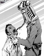 Despite his death the alien still left a lingering effect on the SSSP, Shinjiro was forced to deal with the fact that he had killed someone for the first time. Ide's investigation revealed that his victims were tagged on the back of their necks and most were young girls and children. Ide and Ed concluded that there was a criminal organization behind it. They concluded from his disguise that Adacic was unable to 'purchase' these black market goods and hunted the victims himself, hence his disguise. It was also revealed that there were hundreds of victims with barcodes so far making it clear he could not have committed all of those murders.