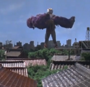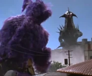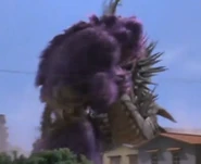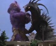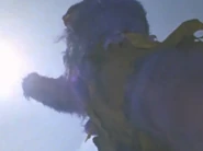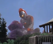 Zuckal grew in size and entered a purple, monstrous form, engaging the acidic creature using nothing but his bare fists. However, he was outmatched, as Gamos knocked him around with his claws and fired explosive spikes at him. Junkichi Ito tried to aid the alien, but was kept away by Gamos' acid. Takeshi eventually awoke and transformed into Ultraman 80 to come to Zuckal's aid. A mortally wounded Zuckal, seeing 80 struggling, chose to tell him Gamos' weakness, high-frequency sounds. 80 used the Ultra High Frequency to weaken Gamos and finished it with the Buckle Beam.