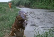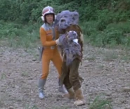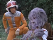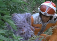 Takeshi located Zuckal once more with his Ultra Ears, and they briefly fought with wooden sticks until Zuckal revealed he was a member of the Space G-Men. He explained that he was not aiding the monster, but with only two days left until he retired from the Space G-Men, he wished to capture Gamos himself to avenge his wife and child, and was willing to sacrifice his own life to do so. Takeshi tried to persuade Zuckal not to fight due to his injuries, and that he could defeat Gamos himself. Zuckal was touched, saying he would have liked to have a son like him, but warned him that only he knew Gamos' weakness. Takeshi was still adamant, so Zuckal pretended to be convinced only to knock him out so he could handle the monster alone.