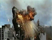 Vibe grew larger and began rampaging. While MAC members attacked from the ground and air, Vibe turned invisible again to target the two MAC aircraft. He succeeded in taking down one, but the other jet, piloted by Dan, charged into Vibe's mouth. Dan activated the self-destruct mechanism, causing both the jet and Vibe to explode. Meanwhile, during training, Gen, inspired by a pine, understood how the alien's invisibility worked. As Dan was about to fall, Gen transformed into Ultraman Leo and saved him.
