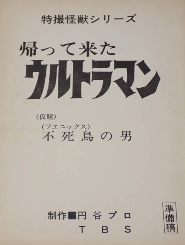 The draft for "Phoenix Man", noting that at this time the series title was still Return of Ultraman .
