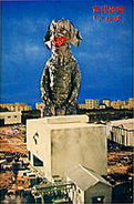 Aroza was an ancient dinosaur that died and his fossils where shown in the National Science Museum. Then when the Invaders arrived on Earth, they stole the Aroza fossils and revived it making it to cause chaos. The night he was first spotted both the SGM and Self Defense Force rushed in with the latter attacking him with jet fighters. During the rampage Kyotaro turned into Mirrorman to fight the giant dinosaur. Aroza held him off with lasers followed by Mirrorman tackling him. The Mirror Knife was soon used only for the beams to be absorbed into the monster's eyes. Before long Aroza gained the upper hand and used several shots from his mouth lasers to fend off the hero until he fled into the second dimension, allowing the giant dinosaur to walk off to the bottom of the sea.