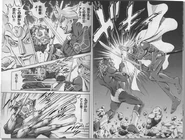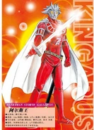 However, the underhanded alien did not come alone, the revival of the Gilas Brothers flew part of the capsule towards his men and sons. Throwing his sword to block it, he was left open for a stab to his leg, allowing Magma to make off with his younger child Astra.