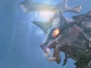 As Regulos managed to successfully commune with the Red Dragon and White Tiger Cosmo Beasts, allowing him to use their power and overwhelm Alien Magma Volcan, the Saber Tyrant responded by calling forth Baraba, which he had bargained with Yapool for. Even with his newfound abilities, Regulos started to be overwhelmed until the Snake and Crane Cosmo Beasts, carrying the will of their former bearers, came to his aid. With the newfound abilities granted by his friends, Regulos proceeded to overwhelm and destroy the Terrible-Monster, leaving Volcan as his only remaining opponent.
