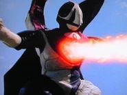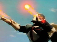 Blitz-Blotz returned later that day with the presumed intention to destroy another GUARD's facility and disrupt the dismantling of high-energy warheads. The monster now had himself to be attacked by Team Lightning and Team Hercules. After briefly launching shots, Blitz-Blotz suddenly jumped at high altitudes and punched Kajio's plane, making his plane half-exploded and Kajio was heavily wounded. The monster also shot the remaining two planes so the Air Force now is disabled instantly.