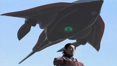 Grande's stingray-like ship (a homage to the Showa Kaiju Bostang)