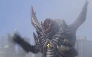 However, one single member managed to escape the onslaught and grew to gigantic proportions the next day by Dark Thunder Energy. Ultraman X tried to attack it but he was easily overpowered by its superior mobility until Nexus/Sayuri came to his aid in Junis form and quarantined the Space Beast in a Meta Field allowing both Ultras to gain the upper hand over it and, eventually, finish it with their Over-Ray Schtrom and Xlugger Shot respectively. Bond -Unite-