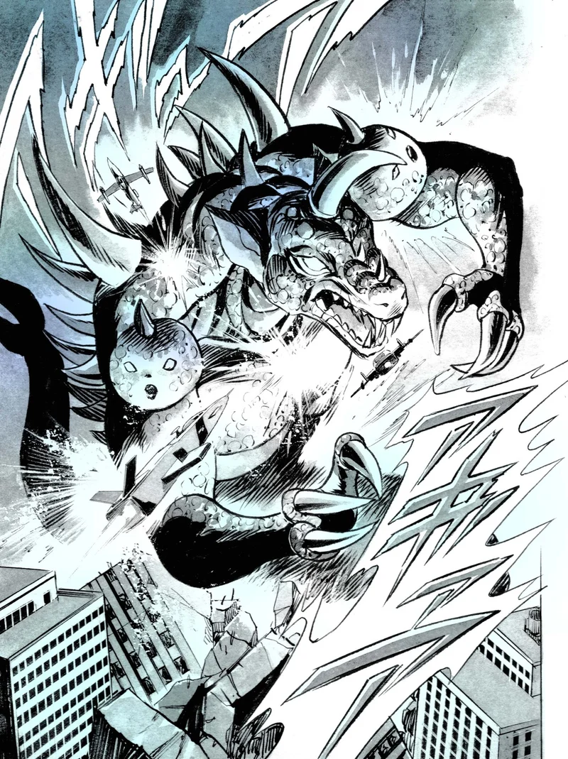 - Electromagnetic Pulse Emission Ray: Childras could fire an electromagnetic pulse emission beam from it's mouth that once it hits any heavy machinery such as jets, helicopters or ships it can disable all of it's power. Childras notably could perform this when he fired said ray at TAC's jets, disabling their flight system.