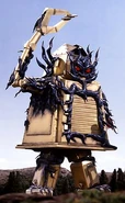 - Storage Chest: In order to maintain it's giant size, Chaos Clevergon will have to consume cars by storing them on it's chest (which originally a television screen, now changed into a car compactor) for digestion.