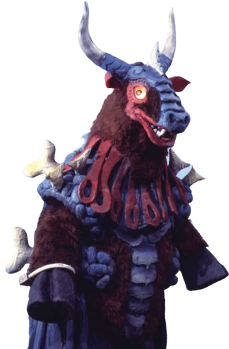 The Cattle God , also known as Bullman is Takai's pre-mutation form before the Cowra transformation completed. This form occured when the man in purple fused Takai with the souls of the cow's grudges.