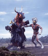 Cowra [1] is one of Yapool's many Terrible-Monsters from Ultraman Ace. He first appeared in episode 16. A minotaur-like Terrible-Monster that appeared after Yapool cursed a human into transforming into the bovine beast, Ace was able to successfully reverse the transformation. Despite Cowra effectively ceasing to exist, Yapool was later able to utilise the monster's soul in the creation of Jumbo King.