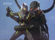 One of Gymaira's slaves, Daron rose up from the water to attack UGM after Lavras's identity was discovered. UGM tried to fight Daron with their guns but did nothing as he shrugged away two members to kill Takeshi Yamato. Luckily, Yamato transformed into Ultraman 80 to fight the monster. With the assistance of Lavras, both monsters double-teamed Ultraman 80 and Daron managed to ensnare 80 with one of his tentacles and electrocute him and let Lavras finish him.