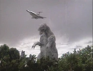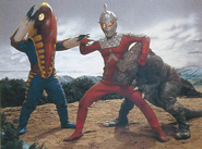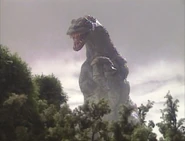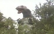 The Dinosaur was immobile, but as night fell, alien lightning fell from the heavens, teleporting the reptilian behemoth away. Days later, as Alien Metron and Ultraseven battled with one another, the alien invader summoned the creature to do his bidding. Teaming up with Alien Metron, the Dinosaur pushed Ultraseven back.