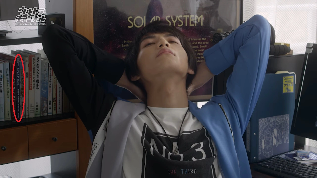 In the scene where Isami puts both his hands on the back of his head, if one looks closely to the bookshelf on the left, a book titled "Astra" can be seen. This is seemingly a reference to the Ultra himself.