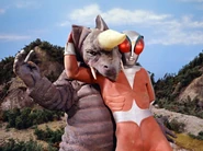 After Dorigon was killed, Dorigorus began to rampage as he searched franctically for her. Dorigorus first attacked a drunken man, striking him with its hand before returning underwater to continue his search. The Ocean Marine group came to investigate and decided to look in the ocean to find the mutant triceratops. Dorigorus was travelling all over the sea floor looking for Dorigon, confusing the Ocean Marine group.