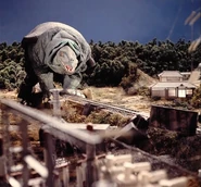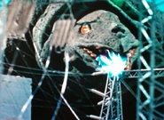 Eledortus suddenly appeared near a railroad, consuming electricity from nearby power lines. As the Kaiju rampaged through the area, MAT's attempts to stop it were futile. Shiro rushed in and called out to the Kaiju, yelling for it to rampage and destroy Tokyo, after which Eledortus even attacked Shiro with its energy ray. Go intervened, using his pistol, but was quickly overpowered and pinned under train rubble.