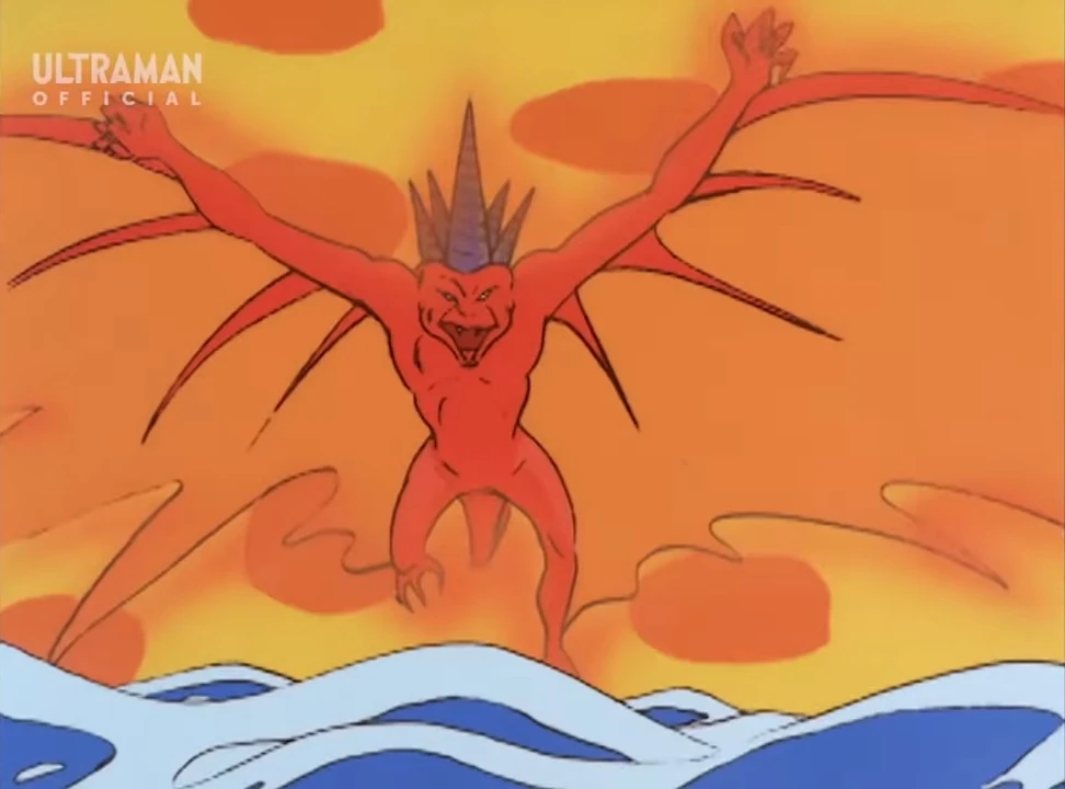 The Badon were prehistoric reptiles long thought to have been extinct until one day a member of their species named Fire Badon arose from the Pacific Ocean and decimated a nearby highway. The Science Guard Party was called in to help secure a small fleet of boats in case the monster would show up. Shortly after going out to sea, the fleet was met with Fire Badon and the Science Guard Party tried to fight back. The team successfully forced the monster to retreat to his home near an undersea volcano, but Fire Badon managed to escape. Once at the base, Pig unintentionally gave Hiroki an idea to hunt the monster inspired by eating grapes, planning that Fire Badon had so much energy that they destroy him by giving him more. Upon returning to the ocean floor, the Science Guard Party quickly met Fire Badon and managed to launch a harpoon into the monster's abdomen. Angered by this, Fire Badon used his home terrain against his persuers and forced them to surface upon thinking he died. Just before Fire Badon could finish the unconscious crew, Choichiro turned into Ultraman Joneus. Try as he did, Joneus was easily out maneuvered in both air and water by Fire Badon until he set his sights on the harpoon in the creature's abdomen. Once Joneus had a clear shot of the harpoon, he fired the Astro Beam, causing Fire Badon to explode after receiving the tremendous shock of electricity.