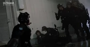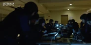 A giant of light, code-named Ultraman, appeared suddenly and caught a falling building that was about to crush Gento and his teammates. Its appearance and subsequent fight with Bazanga forced the GGF to cease fire and observe the situation, while fighters returned to base for rearming and refueling. Around the same time, the GGF's Contingency Command Post dispatched one of its operatives to a nearby building. The operative, armed with a missile launcher, looked for the right timing and fired a special round into the kaiju's nose. After confirming a successful hit, she followed the CCP's orders and left the scene. Unlike the previous two rounds, the third special round was able to disable parts of Bazanga's internal functions and prevent it from using its Organic Blasters. With Bazanga defeated by the hands of Ultraman, the Bazanga Elimination Operation concluded.First Wave
