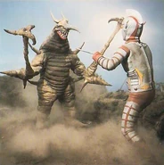 However, Gaiagnes tail crawled back to its' body and attached back to the beast. Catching the hero off guard. Jumborg Ace then broke off Gaiagnes' horn, which caused its' tail to fall off again. Jumborg Ace then destroyed Gaiagnes with Heading Killer.