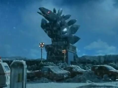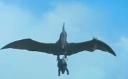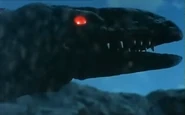 With the Super Aizenborg attacking from one side and a jet from the other couldn't decide who to fight as the flying reptile had his own problems. Tired of being flied at he spewed flames at the jet but, distracted long enough for Aizenborg to drill through his throat and out his shoulder killing Gallon once and for all.