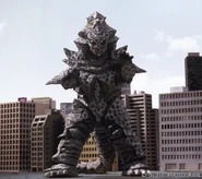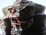 Galra was an ancient monster of the same class as Golza and Melba. He first appeared in the middle of a city in Sector D and proceeded to rampage. GUTS was quickly on the scene to counterattack, but Galra's super dense skin was more than enough to protect him from their assaults. Once Galra noticed Daigo trying to save a woman who was trapped. Daigo transformed into Ultraman Tiga to stop the monster himself. Again, Galra's skin protected him from Tiga's attacks, but not from Tiga throwing him around. With GUTS still firing on him, Galra quickly escaped underground, barely missing Tiga's Zeperion Beam.
