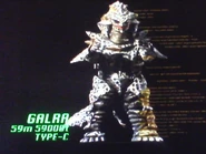 Galra was one of the monsters captured by Charija to be sold, but was freed as his vanguards to secure the Red Sphere, outnumbering Ultraman Gaia. Through Tsutomu's wish, GUTS and Super GUTS were summoned to his world. Daigo intercepted Galra in his GUTS Wing 1, using his past experience with the monster to attack its throat. Tiga, Dyna, and Ultraman Gaia Novel: The Adventure in Hyperspace