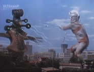 Geegon was a Terrible-Monster created by Yapool after a boy named Haruo who tried to destroy his own violin after getting into an argument with his strict mother. Taking the form of Haruo's violin, the violin began playing Bach's Violin Partita No. 3 by itself, stealing the soul of Haruo and a girl. The violin then flew around the city, slowly stealing the souls of anyone who listened to his playing, growing bigger by the minute. Finally upon growing big enough, the violin began to playing in the heart of the city, stealing even more souls to empower it. After a scuffle with Haruo's mother, who willing put herself under the violin's influence, Hokuto and TAC opened fire at the giant violin. However, this finally unleashed Geegon's true form, who attacked back and downed TAC's jets. Hokuto quickly transformed into Ultraman Ace to battle the violin Terrible-Monster, but Geegon had stolen so many souls and was able to overpower Ace both physically and with the aid of his supersonic attack.
