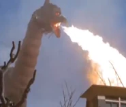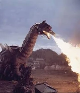 Sometime later, Gelan's offspring were discovered as they were hatching out of their eggs by a young kendo student named Ryuichi, who quickly killed most of the Gelan babies to protect an injured girl. Ryuichi's action angered Gelan, and she emerged from underneath the boy's school, but still remained in her burrow. Gelan destroyed one of the school's buildings and terrorized everyone around her. Unable to escape from Gelan, Ryuichi along with the other students and teachers took shelter in the school's lobby, and ZAT soon arrived on the scene and engaged the Kaiju with their attack vehicles, but the Kaiju resisted their firepower and unleashed energy blasts from her back to counterattack, forcing the attack team to cease fire and hover above the school unable to rescue the students without Gelan crushing them if they tried to land. Gelan then fell asleep, unbeknownst to ZAT.