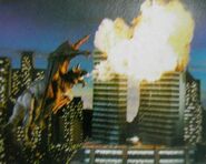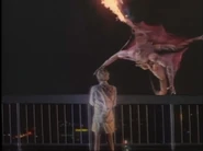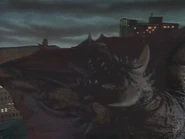 Once by himself, Jack Shindo turned into Ultraman Great to fight Gerukadon. Great used his Palm Shooters, but Gerukadon's fire resistance prevented the alien mutant Kaiju from receiving serious harm. The same thing happen when Great used the Knuckle Shooters. After Jimmy broke free of the Gudis hold, Great used the Magnum Shoot to purify Gerukadon. With the monster now free of the Gudis virus Gerukadon, now as Gus, took off into the night sky with Jimmy. The Child's Dream