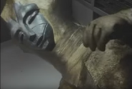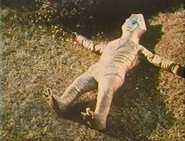 Gold Satan lured Kyotaro to the roof who in turn became Mirrorman using the reflection off of the knife. Gold Satan followed the hero into the second dimension where they exchanged punches. Mirrorman managed to beat him down, but Yoshio's mother yelled not to kill her son. Gold Satan used his mouth beams to stun Mirrorman in the face and overpower him briefly. The saucer back in the third dimension fired its beam only to miss the hero. After a second failed shot both Gold Satan and Mirrorman returned to the third dimension where the latter used the Mirror Halation to knock the Invader off the roof where he died. Obliterate! Operation: Human Body Invasion