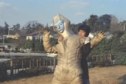 Gold Satan appeared in episodes 11 and 18 of Mirror Fight. Stock footage of his fights in Mirrorman were reused in this series.