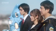 As SKIP assisted in the evacuation, Hiroshi found Tsugumi amid the chaos. When Gomess attacked a nearby tower, causing it to collapse, Hiroshi instinctively shielded his daughter. At that critical moment, Yuma transformed into Ultraman Arc, saving them both. The creature's disguise then faded, revealing its true form: Supekkio. After Arc defeated Supekkio, Tsugumi, inspired by her father's bravery and Arc's heroism, overcame her fright. She delivered a heartfelt on-camera report to her audience.