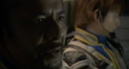 Not long after, he continued to work with ZAP SPACY in space, but as Rei gradually lost control of himself due to his Reionics genes, he was more concerned about Rei's condition than anyone else.