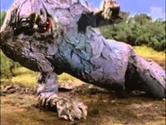 A search was sent out to locate the monster, soon catching up to him and attacking him however, his invisibility made it difficult to hit him until finally, it vanished into space. They then discovered that his invisibility was the result of his hull moving at high speeds, making it invisible to the human eye. They soon came up with a plan to use three special new weapons using different wave lengths of light, which together could reveal the invisible beast. The plan worked perfectly and Jamila was revealed and they opened fire. Once the disguise was blown, Jamila emerged and was chased by the Science Patrol into the forest. They opened fire but their weapons were useless against the space monster. Jamila finally managed to escape into the forest and the Science Patrol couldn’t find him.