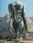 Jamila[5][6](ジャミラ, Jamira) was an astronaut who came into contact with an extraterrestrial mutagen and transformed into a monster. He returned to Earth with a vengeance for the human race, but was killed by Ultraman. Deemed a victim of an unfortunate fate, a plaque was raised in the former human's memory.