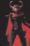 Said to be the spawn of the devil, Juda was defeated 50,000 years ago by Father of Ultra. Juda was an immaterial entity born from a Spacial Distortion and whose life was tied to that distortion. Because of this he desired to spread the distortion around the Universe, strengthening himself but threatening the stability of the Universe. After finding that he literally could not fight the space demon, Father of Ultra, used the training of his father and grandfather, and used his Ultra Horns ability to gather large amounts of energy to become strong enough to repair the distortions in space, resulting in Juda's defeat. However, Juda would later revive thousands of years later as the distortion that first created him returned. Now returned to the universe, Juda unleashed his evil by reviving Alien Hipporit to attack earth. While Ultraman Ace was preoccupied with the alien, Juda confronted Father of Ultra and the two battle, with Juda emerging victorious in all but killing him. As Father of Ultra was being restored, Juda then revived the monster Enmargo to attack earth, leaving Ultraman Taro occupied in fighting the evil monster. As Taro bravely went to Earth for his first real battle, Juda summoned the spirits of Alien Baltan, Red King, Gomora, Alien Mefilas, Eleking, and Alien Hipporit and combined them to create the monstrous machine known as Grand King. Juda laughed with pride as he watched Grand King easily shrug off opposition from the other ultras (Ultraman, Zoffy, Ultraseven, Ultraman Jack, and Ultraman Ace.) Even with the late appearance of Taro to assist his brothers, Juda's creation was far too powerful for them to defeat. However, Juda's plans were foiled after the other ultra brothers merged with Taro and Grand King was destroyed by Taro's Cosmos Miracle Beam. With his minions all destroyed, Juda then fled to the deepest reaches of space. Ultraman Story