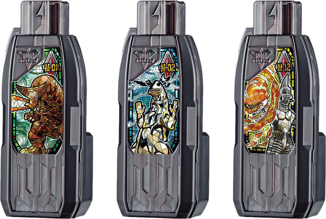 Kaiju Keys are items that GUTS-Select use in conjuction with GUTS Sparklence to fire specialized ammunition. In the case of Ignis, using them allows Trigger Dark to harness their powers in his attacks and Circle Arms. When not in use, they are stored in the GUTS Buckle .[1]