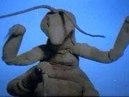 Kamagyrus is a Kaiju that appeared in episode 21 of Iron King. He is Titanian Operative No. #3 and serves Titanian No. #1. Like all the other Titanians, he wears a black hat, a red cloak and a white mask. In his giant form he is an insect monster.