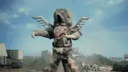 Eventually, PAT discovered the mannequin through various reports and tracked it down into the city during day time. A small chase happened when they decapitated the wooden criminal. While it seemed like the end, Kendaurus proved the idea to be false as it rocketed the mannequin's head back upon the body and revealed its true form to destroy the attack team. Naoki transformed into Jumborg Ace and then proceeded to challenge the monster to a battle. They engaged in combat with Kendaurus being a tough opponent, the monster constantly reflecting the machine's attacks back at him with the reflective metal on its back. PAT blew it off with several missiles allowing Jumborg Ace to fight on even levels. After a bit more struggle, the hero finished off Kendaurus with the Windmill-Deadly, slicing the horrible creature in half as it fell and burnt to ash.