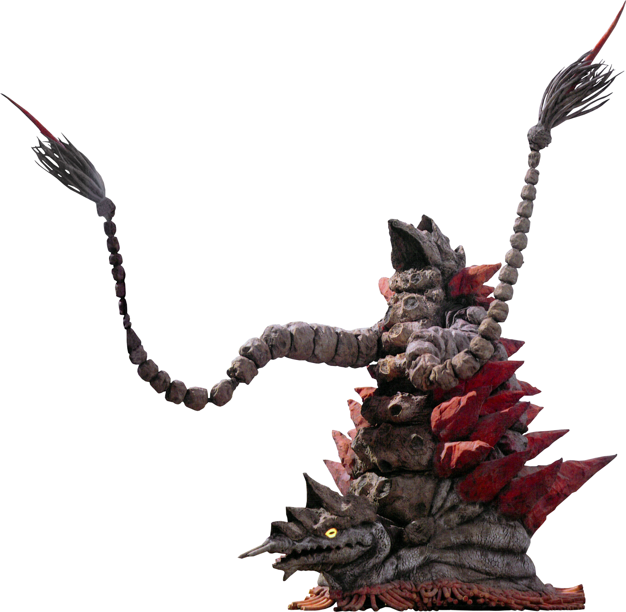 Litomalus was a monster who had been created from built-up exhaust smoke from vehicles from over the decades. Since his birth the monster had been emitting the same type of smoke to make his lair more suitable for himself. The beast was discovered by four kids who witnessed Litomalus' poisonous smoke clouds destroying the lines between two towers. However because the children were notorious for being delinquents and troublemakers in their village, no one would believe them. Angered from not being trusted, the four kids went off to find the monster themselves and returned to the sight of the monsters lair. The kids then foolishly awakened the monster with some firecrackers and Litomalus proceeded to go on a rampage, destroying what was in his sights with his acid.