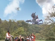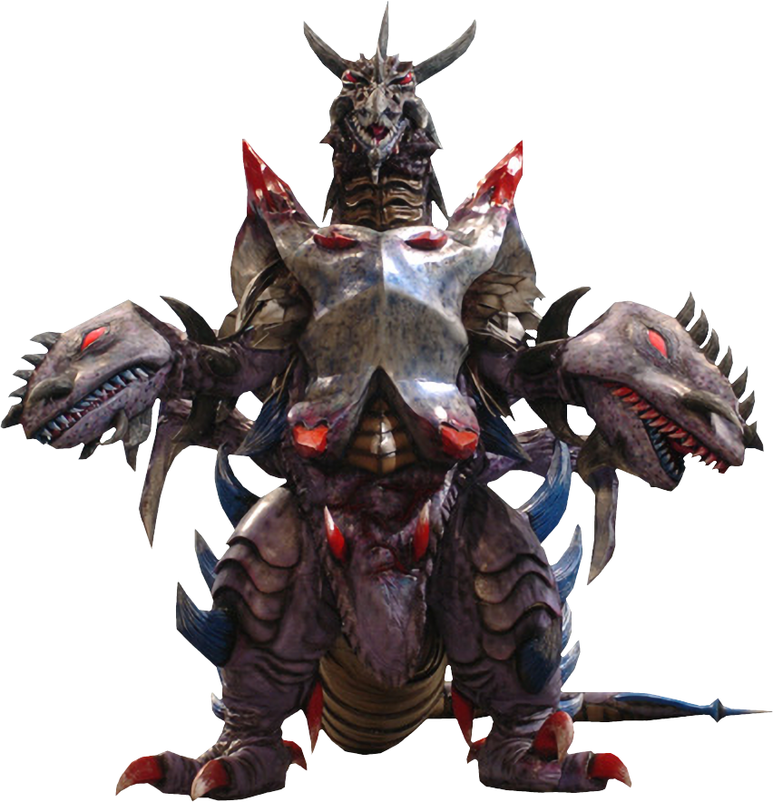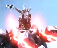 Luganoger was an evil, planet-ravaging monster that had destroyed several planets in his ruthless path of destruction. While he was destroying an Earth-like planet far away in the Milky Way, Luganoger noticed that one survivor was escaping his destruction and followed after her, shortly after destroying her home planet. Luganoger followed the escapee to Earth for as long as a month until he finally landed on Earth to carry out his destruction. DASH was quick to oppose the monster after deciphering a warning sent by the planet Luganoger had destroyed long ago, and assaulted the monster, but Luganoger's armored chest and electric bolts was more than enough protection from their assaults. They fired a barrage of missiles at the monster, but their attack was ineffective and one of their missiles was knocked away, lodged into the ground.
