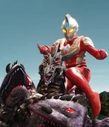 After Luganoger endangered a group of children who were trying to evacuate his rampage, Kaito Touma quickly transformed into Ultraman Max and proceeded to save the children and battle with Luganoger. At first Max had the upper hand in battle against Luganoger, but the tides quickly turned once Luganoger used his stinger on Max to absorb his energy. After a brief intervention from DASH, Max was able to throw the misfired missile back at Luganoger and ultimately managed to destroy the evil monster with the Max Galaxy.