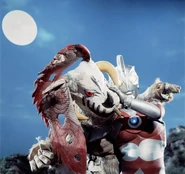 Lunaticks reappeared as one of Ultraman Belial's 100 Monster Army. He teamed up with Mukadender, Kelbim, Angross, Gromite, Froguros, Birdon, Jasyuline, and Alien Valky to fight Ultraman Mebius. During the final battle, as Belial shoots thunder from his Giga Battlenizer to knock down Ultraman Mebius, Lunaticks is killed along with Jasyuline. Mega Monster Battle Ultra Galaxy: The Movie
