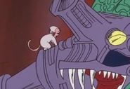 In one event, a mysterious unmanned spacecraft was recovered and sent to the Far East Base. This unmanned spacecraft was essentially a material teleporter, and the Heller Empire attempted to use it to transport Kaiju. However, during this time, Monkey, who was playing with a squirrel, accidentally entered the teleporter and merged with Dostony 1, transforming into Monkey-Dostony.