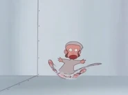 As Monkey still retained his consciousness, he did not act recklessly but stood helplessly crying in place. According to the speculation of the Earth Defense Army doctor, Monkey, who entered the teleporter and fused with the transported Kaiju, underwent a mutation that current Earth technology struggles to separate. To mitigate the risk of a rampage, Monkey was confined in a cage by the Earth Defense Army. However, due to Pigu's sympathy and plea, the cage door was opened.