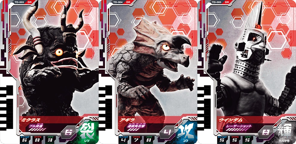Decker presumably uses them back when was active as Ultraman Decker having possession of three, known as Miclas, Windom and Agira. These cards are also passed on to his ancestor Kanata, allowing him to summon them as reinforcements.