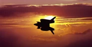 The team embarked on the giant battleship Sky Shark. However, during the attack on Shadow, the beam was deflected by the Shadow's defense mechanism, leading to the crash of the Sky Shark.